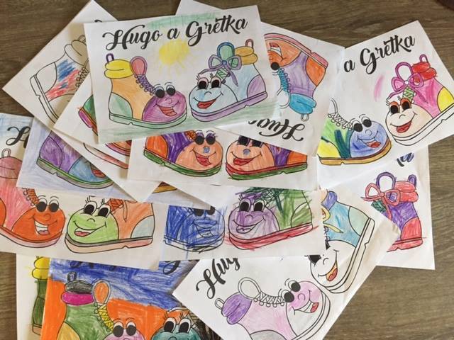 S vydaním prvého Huga a Grétky v Kľakovskej doline, autorka publikácií zapojila Materské školy do súťaži o výtlačok. Detičky vymaľovali obrázok topánočiek a ona potom škôlku navštívila.
