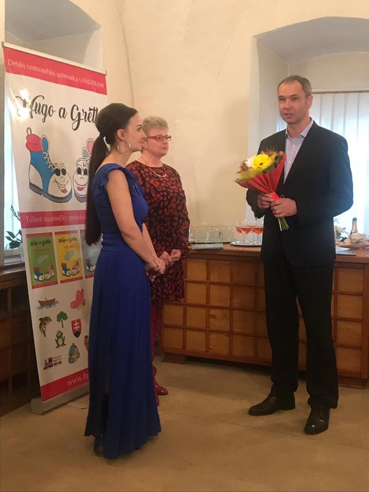 Ďakujeme z celého ❤️ všetkým, ktorí strávili dnešné slávnostné dopoludnie (1.3.2019) s Hugom a Grétkou a spoločne sme uviedli publikáciu Hugo a Grétka v Novej Bani do života. Krstnými rodičmi sa stali pán primátor Branislav Jaďuď a Alica Bindova, ktorí pokrstili publikáciu rozdrveným ryolitom (lebo práve ten dotvára dušu tohoto vydania ?) a presne ako v rozprávke, kde sa voda sype a piesok sa leje sme publikáciu rozprávkovo pokrstili.
