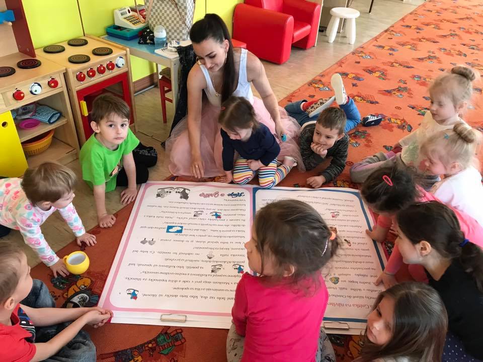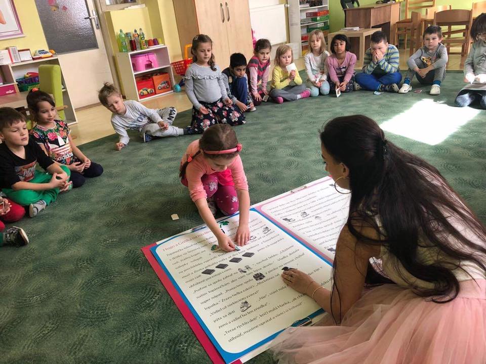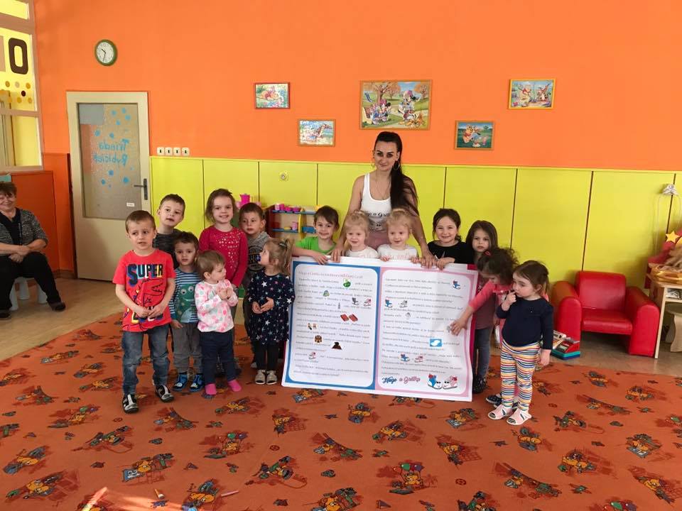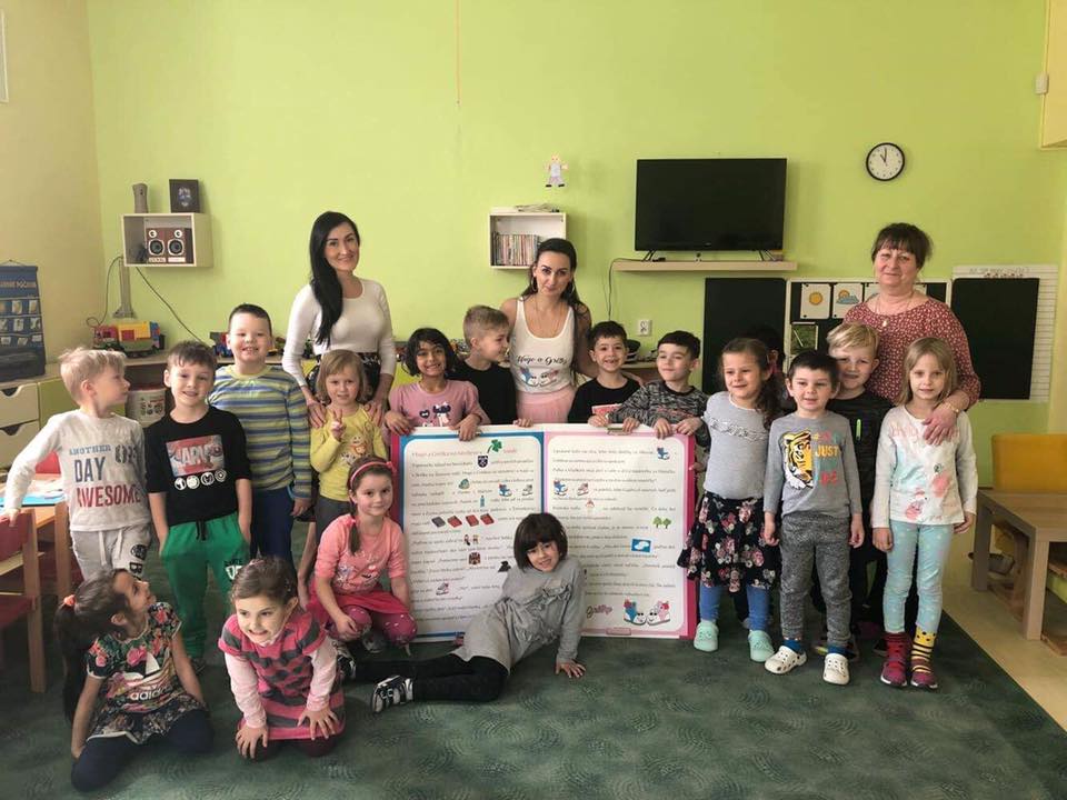 S mega knihou Huga a Grétky a interaktívnymi besiedkami sme začali navštevovať materské školy hneď po jarných prázdninách. Ako prvú sme navštívili motýlikovú triedu MŠ Nová Baňa na Nábrežnej ulici.