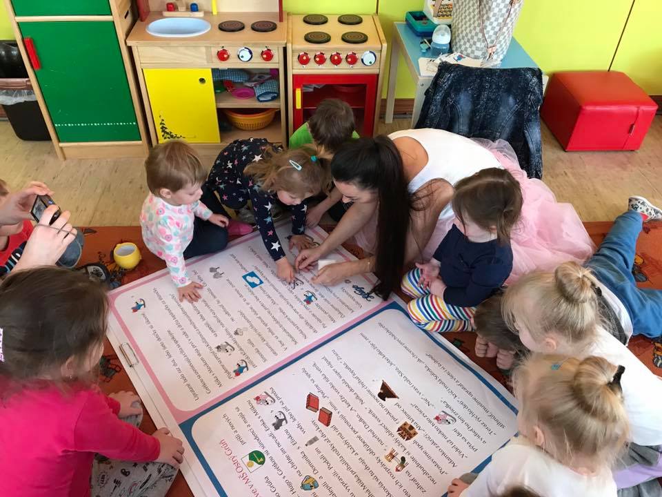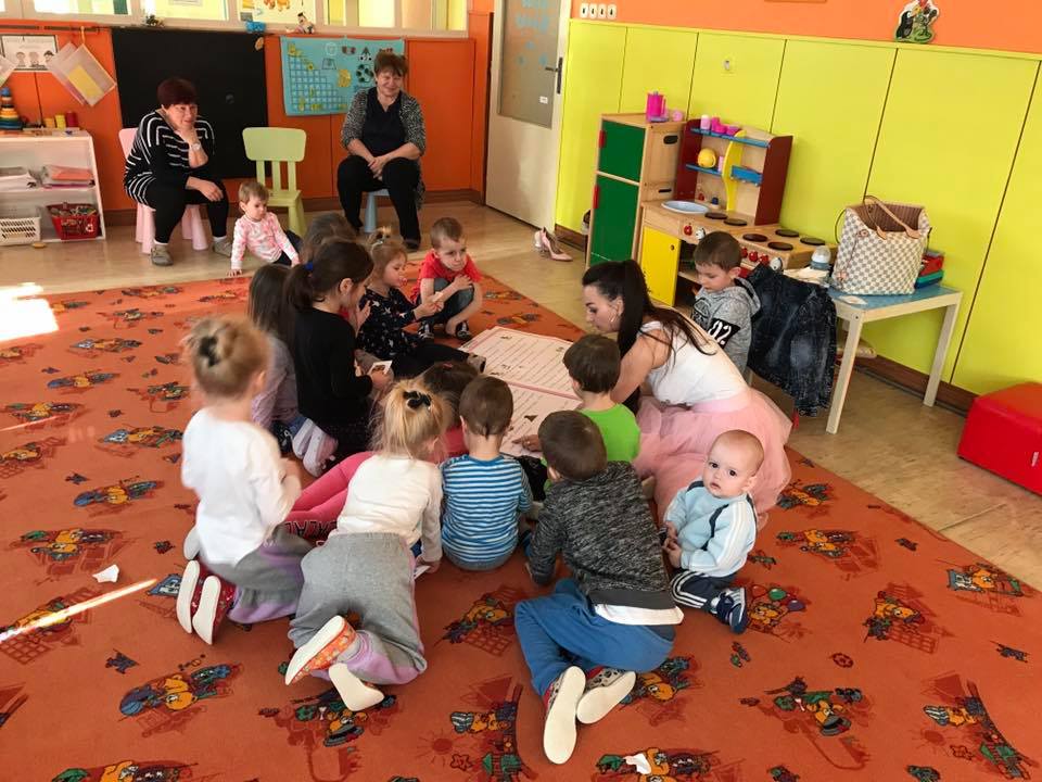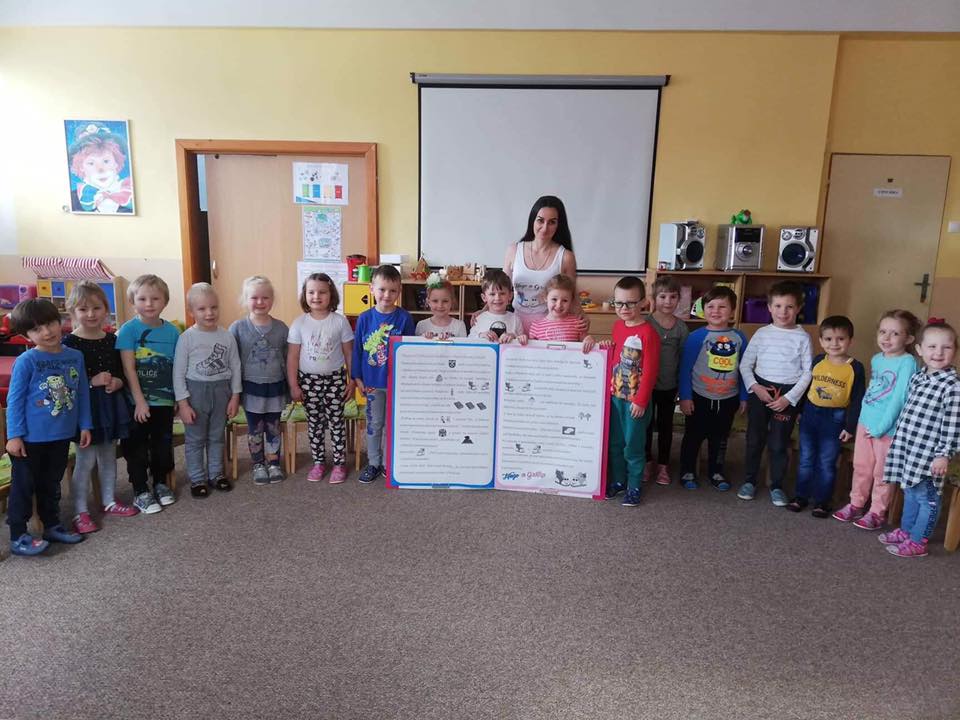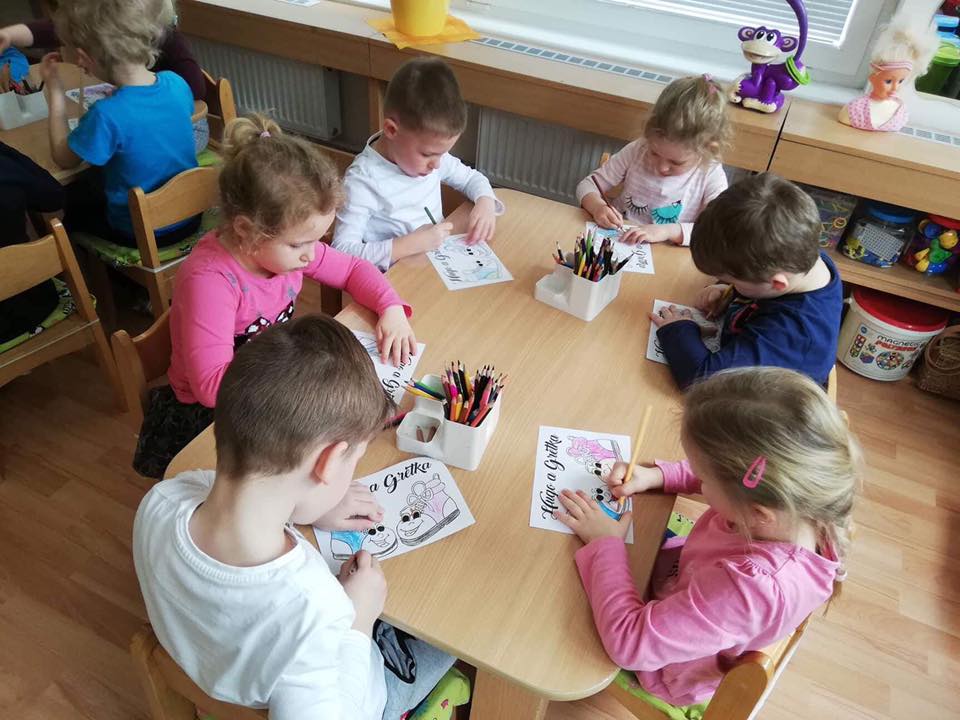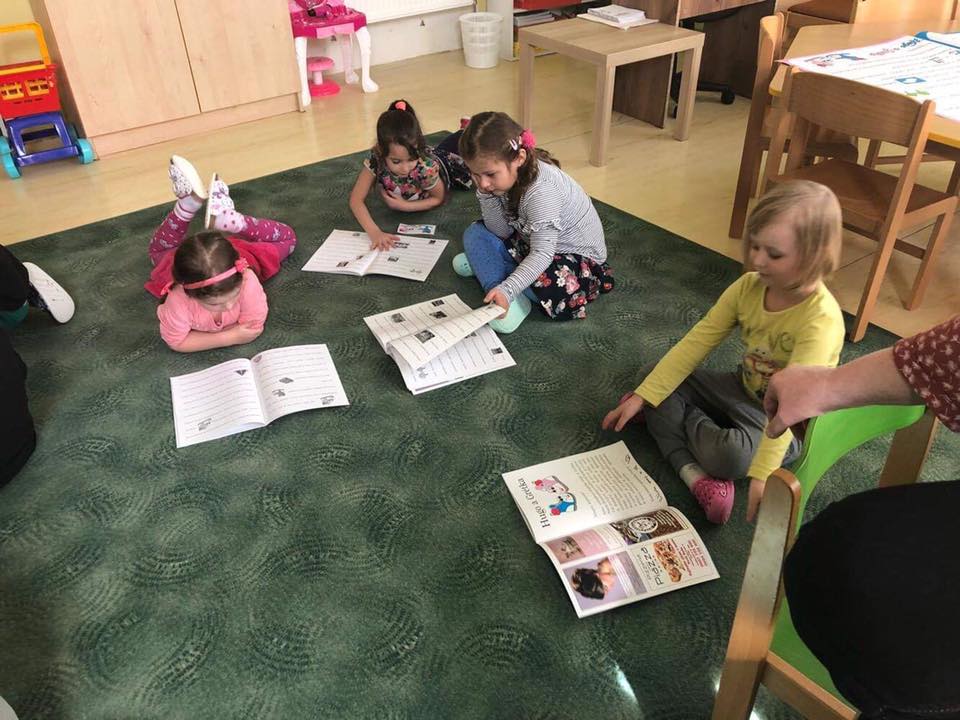 S mega knihou Huga a Grétky a interaktívnymi besiedkami sme začali navštevovať materské školy hneď po jarných prázdninách. Ako prvú sme navštívili motýlikovú triedu MŠ Nová Baňa na Nábrežnej ulici.